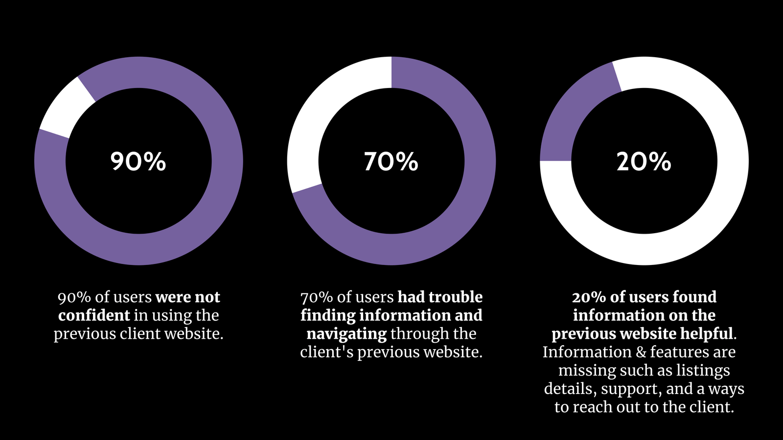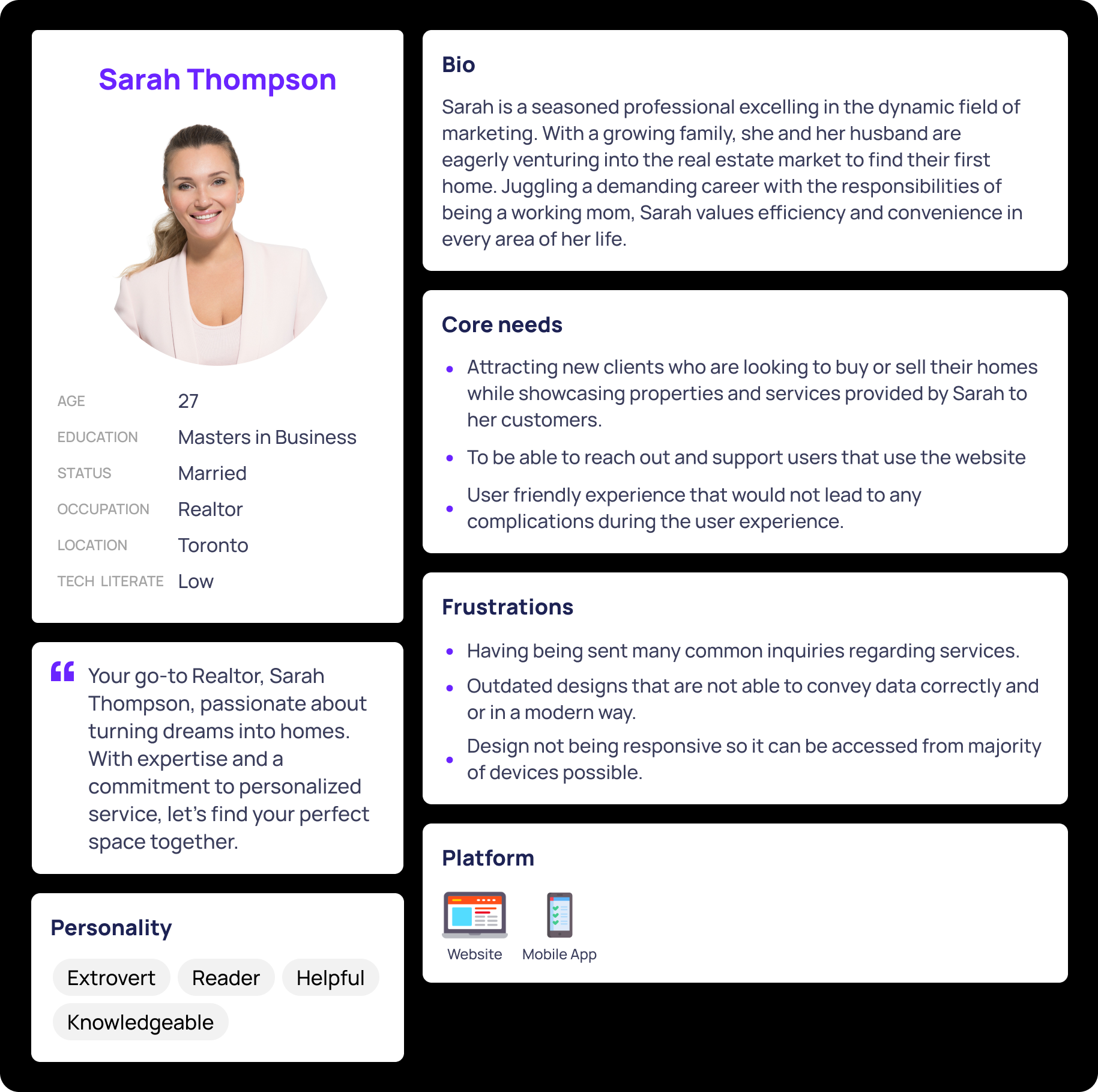 Problem: Realtor felt distant from clients. Clients were not able to find information they were looking for and users did not feel confident of the Realtor with the current website and information provided.