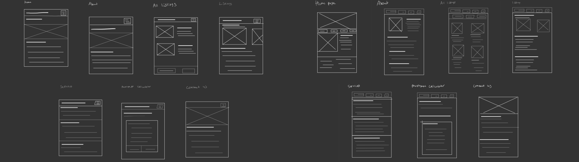 Since this application will be responsive for all devices, I had made sketches for both computer and mobile. I included resources and ideas such as a mortgage calculator which can be found useful for buyers looking to estimate what they are looking for.