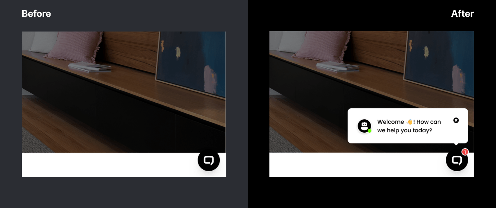 During the usability studies, I noticed users were not able to see or interact with the AI chat bot. The chat bot was not noticeable at all so the notification window was added. The chat bot not being noticeable was keeping users away from it, leaving a form of support being hidden. Users can have their questions answered since the chat bot has learned everything about the website. To help I added notification so users were aware of the chat bot.