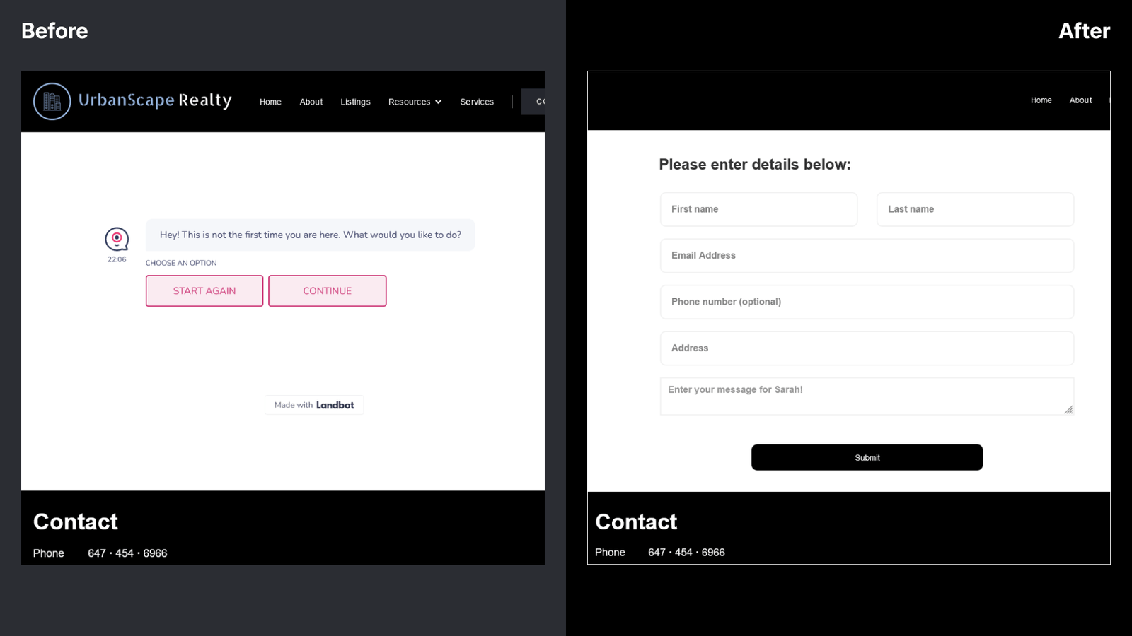Another design iteration I made was with the connect page. I was using a separate bot for this page that users did not want to interact with. I took the bot out of this page and users found the new form a lot better and had enhanced user experience because it was very simple to use.